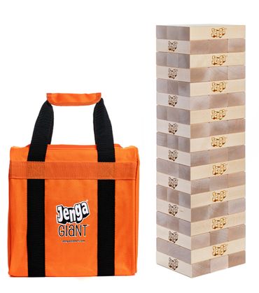 Easy to set up and even easier to play, Giant Jenga guarantees laughter, suspense, and friendly competition as players carefully pull blocks and stack them higher and higher — until the tower comes tumbling down! It also comes with a convenient carrying bag for easy transport and storage.