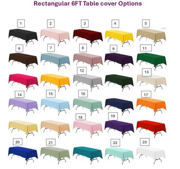 Our premium table covers add a polished, elegant touch to any event. Designed to fit standard 6-foot rectangular tables perfectly, they’re available in classic white and other colors to match your theme. Made from durable, wrinkle-resistant fabric, these covers are both stylish and practical, protecting your tables while elevating the overall look of your setup. Each cover is freshly cleaned, pressed, and ready to impress at your next event. Table covers available in different covers please go to our Gallery for color options. Just scroll down.